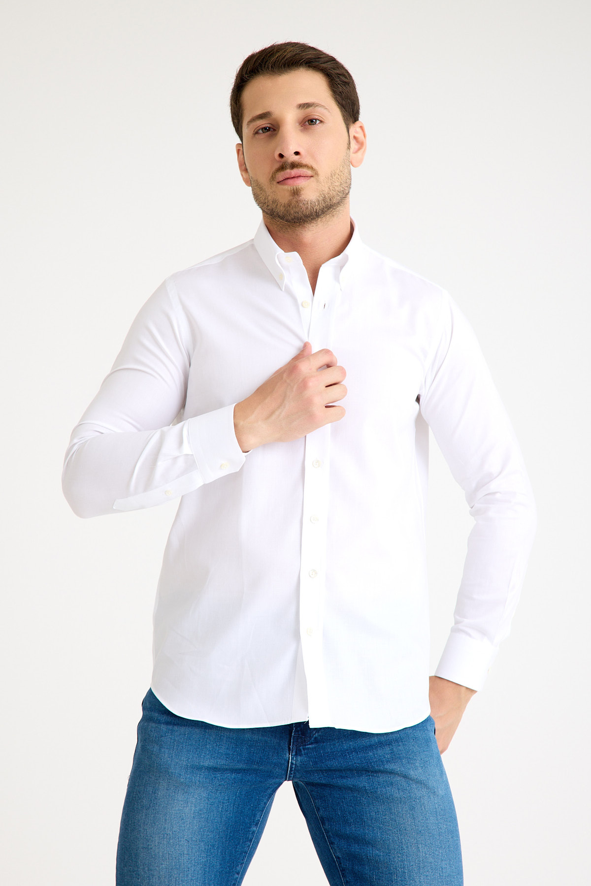 One Bull Kuşgözü Beyaz Gömlek